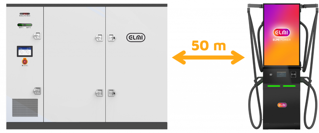 Das Hub400-System trennt Batteriespeicher (340 kWh) und Ladestationen räumlich: Der Hub liefert 400 kW DC-Leistung an bis zu 3 Dispenser (6 Ladepunkte) über Distanzen bis 100 Meter – bei nur 20-70 kW Netzanschluss. Verdient 24h an 7 Tage der Woche Geld.